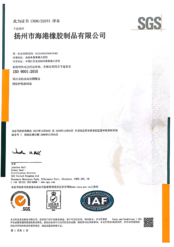 凡在海港橡膠購買的產品享受提供的終身維護服務。